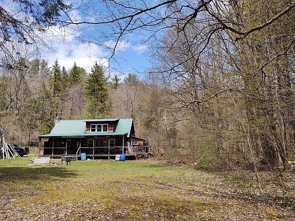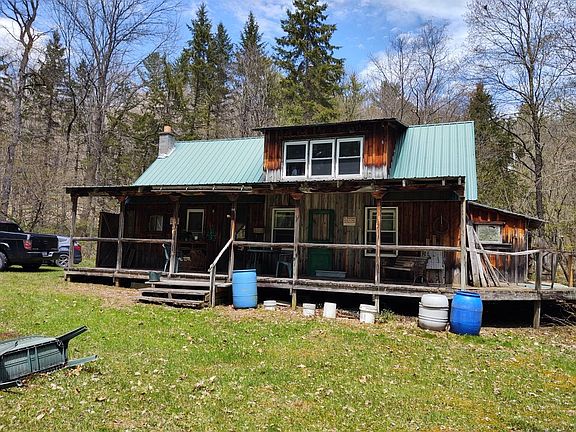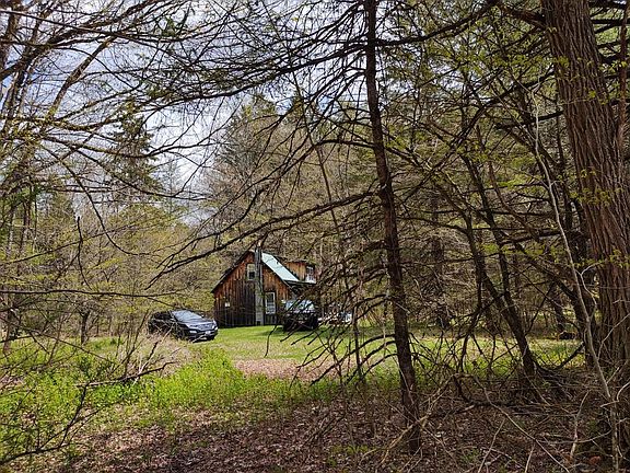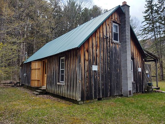 Charming 3 bedroom camp that joins over 10,000 acres of State Forest in Blenheim. Equipped with a septic and electric but presently needing a well ( old dug well not operable) The seller has received estimates of between $2,000 and $3,000 for the well. The main sitting room has a wood stove for cozy winters and a small kitchen counter . . for a future kitchen. There is a half bath ( flush toilet with bucket of water)and 3 bedrooms ...2 down and 1 up. The camp has a new metal roof and all new thermal windows......a large back porch for viewing the wildlife. Great setting just a few miles to Blenheim , Rt 30 and Minekill State Park......Super easy Taxes.