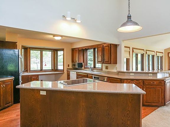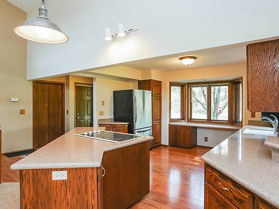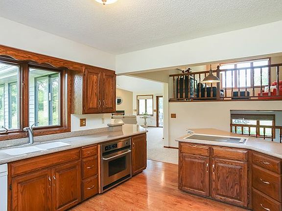 Bright & open home on secluded 10 acres close to I35 & next to Ritter Park. Large great room w/wall of windows, vaulted ceilings & gas fireplace. Remodeled kitchen, LL rec room w/ wood fireplace & 3 car heated detached garage perfect for hobbies/toys!