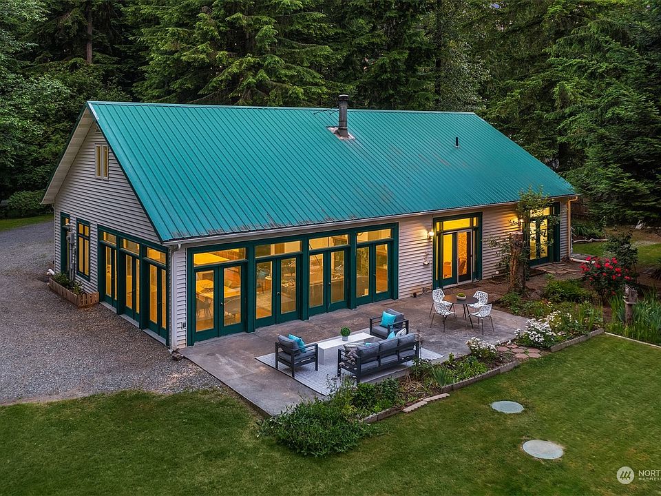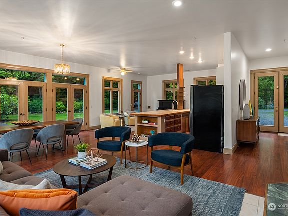 Custom-built Arlington Heights residence offers a remarkable Pacific Northwest living experience. Surrounded by mature trees on a 2.5-acre lot, home provides optimal privacy with amazing potential for those enjoying the outdoors. Inside, the open-concept layout of the main living area includes a dramatic wall of windows that flood the space with natural light. Chefs will appreciate the retention of classic design touches along with modern appliances in the kitchen. 4 well-appointed bedrooms + 2 bathrooms ensure comfort. The attic with separate entrance could be converted to ADU. Gardeners will love the exceptional space for growing. Spacious patio is perfect for enjoying views of park-like land.