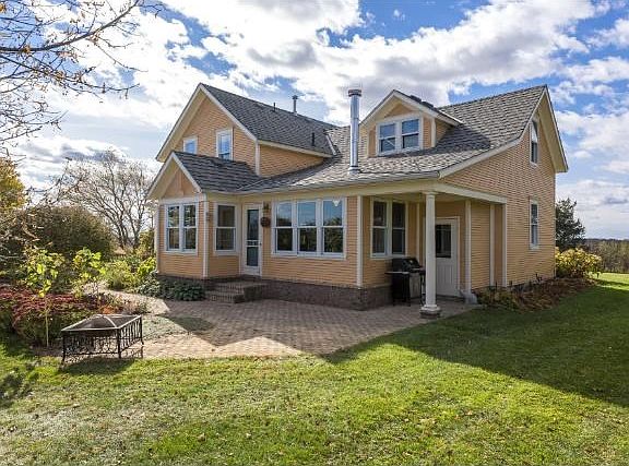 Historic hilltop vintage farmhouse with beautiful views of the rolling countryside. Lovingly updated with traditional clapboard siding and modern scandinavian interior design. Solid red oak, white rustic flooring, 4 seasons porch. Organic gardens, established perennial gardens. Hand built hen house. See virtual hour. This is a one of a kind property!