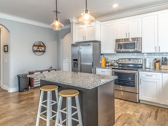 - Interior: Ceiling Crwn Molding, Floor Hardwood, Lighting Recessed, Washer/Dryer Hookup, Window Treatmnt None, Woodwork Painted, Ceiling Raised, Floor Tile, Floor WW Carpet, Pantry, Split Bedroom, Breakfast Bar, Kitchen Island, Walls Wainscoting