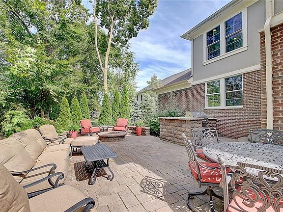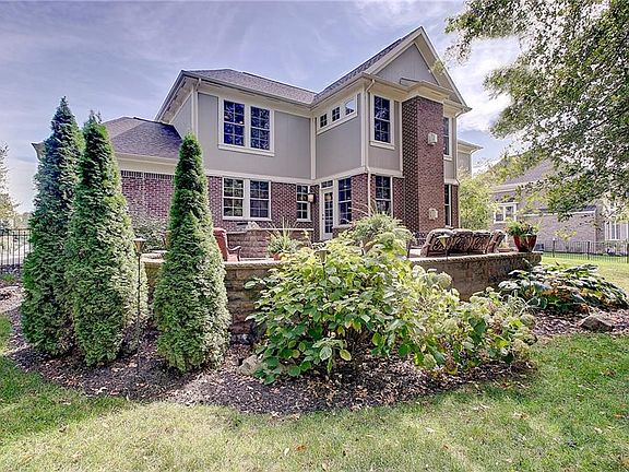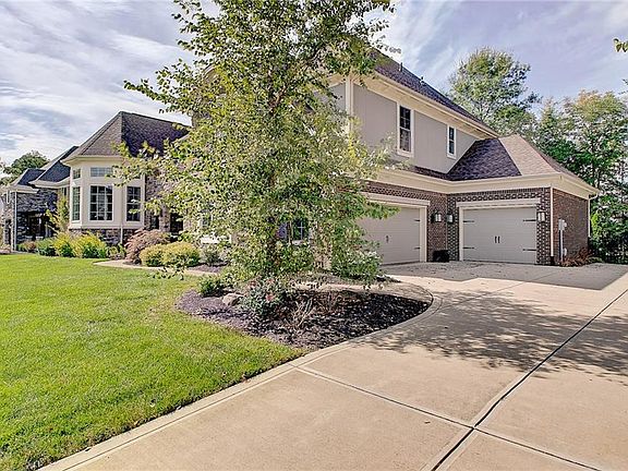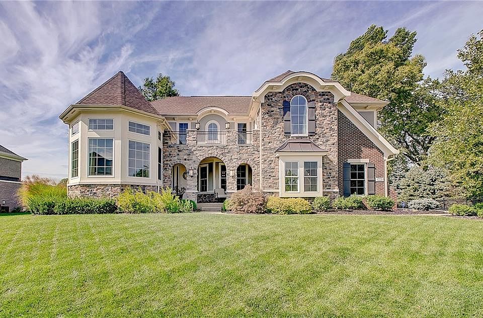 Luxurious living in the Woods at Thorpe Creek! This inviting French style home is nestled on a wooded lot with incredible outdoor living. The home features a grand entry with curved staircase, library with coffered ceiling and double sided fire place, main floor den along with library, and a gourmet kitchen with enormous center island! The custom features in this home are endless! Massive master suite with sitting room and fireplace, large his and her closets, and a spa like bathroom with large walk-in shower that you would have to see to believe! Spacious bedrooms, 2nd story balcony, finished lower level with 5th br, rec room, and wet bar. Private outdoor living space with large patio and fire pit. Just minutes from Hamilton Town Center.