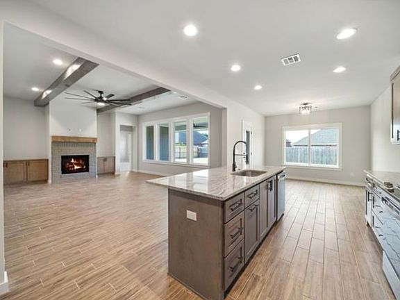 Beautiful newer construction home in Chisholm Ranch within the Bixby School District. This open and bright floor plan features hardwood-style tile flooring throughout, large picture windows, and a dedicated office for remote work or study. The kitchen includes quartz countertops, modern cabinetry, and a spacious island that overlooks the living area with a gas fireplace. The primary suite offers a relaxing retreat with a private bath, double vanities, and a walk-in closet. Located close to major dining, shopping, and retail areas.