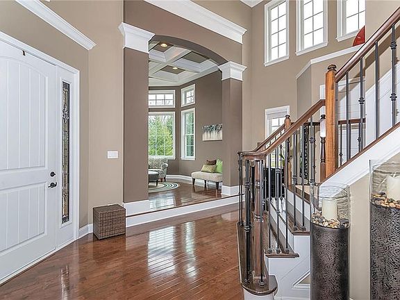 Truly ONE of A KIND home in Hamilton Proper on a private court. This 5-bedroom, 4.5 bath, 3 car garage, full finished day light basement with full wet bar has it all! Custom finishes from the inside ceilings & woodwork to the outdoor kitchen that is sure to refresh you. Soaring 18' ceilings welcome you to this grand home. Hardwoods & windows galore will guide you through each room. The main level includes the sitting room with coffered ceilings, formal dining room & eat-in-kitchen that will be everyoneâs favorite. The master suite creates the perfect quiet getaway & 4 other bedrooms give children & guests tons of space. The bonus is the outdoor retreat with multiple sitting areas, gas firepit, gas grill, refrigerator, & outdoor TV.