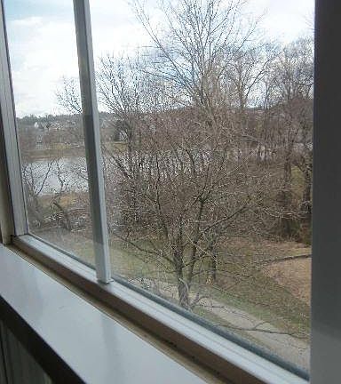 Top floor, Vaulted ceiling, Lake View (!!) 2 bedroom master suite condo, skylights , wood burning fireplace, built in bookcases, balcony and more...Great location, 3 minutes to I270 ramp, close to all major shopping and paths that circle a beautiful lake. New Carpet, Fresh Paint and ready to move into ! $40 per adult app. fee , No smoking, No pets.