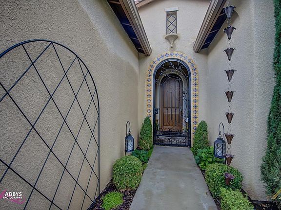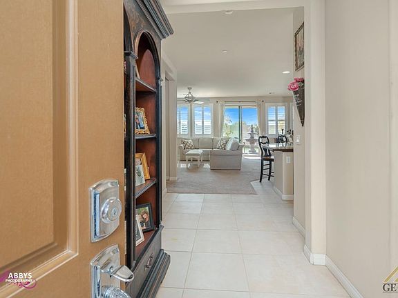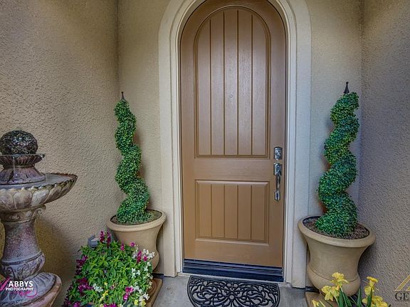 Brighton Parks, a gated 55+ community is a lovely community with clubhouse, gym, pool, spa, community parks as well as clubs and lots of activities. Spanish style entry with gate opens to the great room, dining area and kitchen with slide door to covered patio. Kitchen features granite counters, gas stove, bar and pantry. 2 bedroom split wing floor plan provides privacy for guest and owner. Primary suite with private bath with soaking tub, tiled shower, large closet and linen closet. Indoor laundry. Shutters and fans throughout. You'll love relaxing in the low maintenance backyard with water feature, covered patio with fan plus a gazebo.