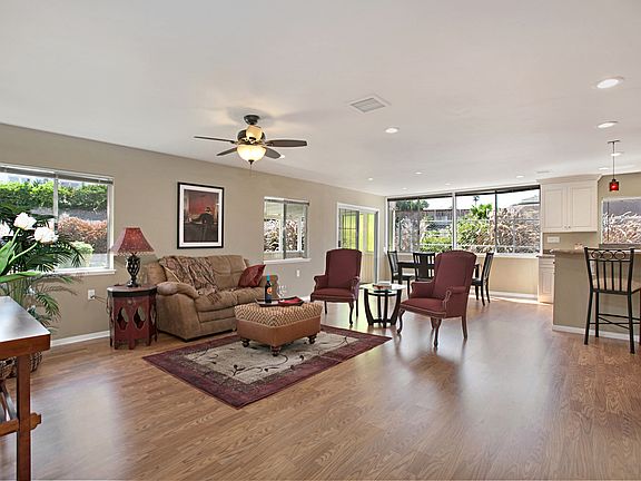 Fantastic remodeled kitchen & open concept living area. Upgrade the rest of this home to suit your tastes and you will have a real winner. Brand new stucco and exterior paint. Rare 3 BR 2 BA 2 car garage detached home in Seven Oaks, a 55+ plus community of Rancho Bernardo. Priced to sell now. Membership in Seven Oaks Community Center includes, fitness center, swimming, law bowling, and numerous activities and hobby groups. Termite work done.