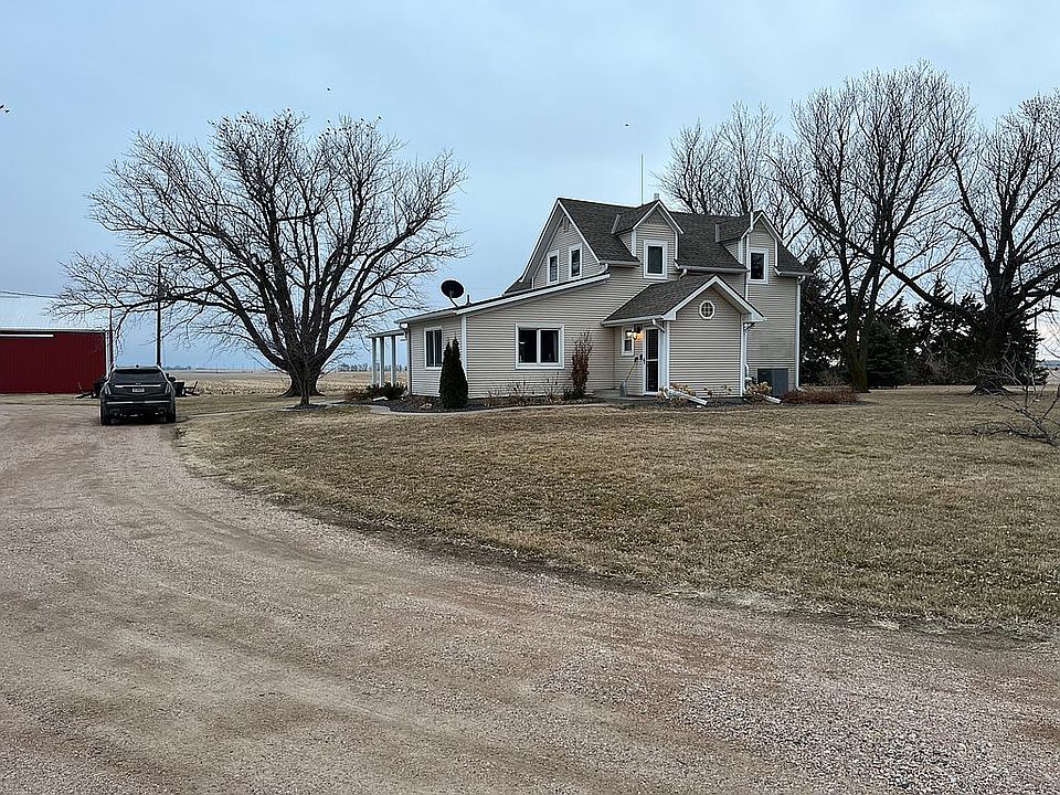 Beautiful well maintained acreage, fully remodeled, located a mile from Cross County Schools and a quick 15 minute drive to York on Highway 81. Sits 1.25 miles off the highway. Home includes custom kitchen cabinets and granite countertops, 2 egress windows in basement where you could safely and easily add another bedroom, marble tile in master bathroom with onyx counter top and custom vanity along with a large soaker tub, double closets in master bedroom, two full baths with double sinks, beautiful stone fireplace, custom cabinet stair storage, and new windows throughout. The HVAC system was replaced in 2021. Water heater was replaced in 2019. House is primarily foam insulated and includes a radon system, reverse osmosis, and soft water. All built in appliances included. Updated landscaping, well maintained out buildings (Full concreted barn, 24x72 Machine shed well insulated and full concrete with 200 sq ft fenced in area for animals with dog door access, 54x75 Machine shed with white rock floor, Insulated Well shed, 11,000 bushel bin with aeration floor, South facing deck with hot tub, basketball court, landscaped area using pea gravel for a fire pit, full front yard of underground sprinklers installed in 2021. New roof on house, garage and skylights in 54x75 machine shed being installed summer of 2023. This is the best of country living!
