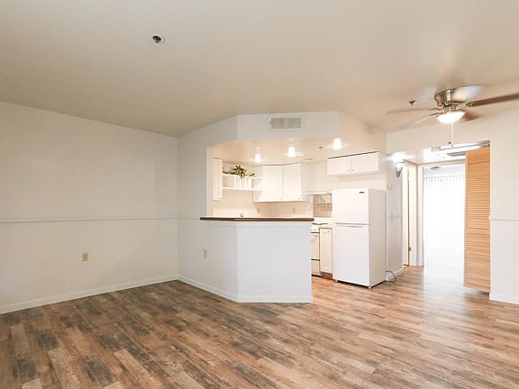 Fantastic opportunity to own a move in ready, first floor unit. You will appreciate the neutral colors, wood look laminate floors and newer kitchen with shaker style cabinets. Nice size bedroom with sliding door to a private patio. Inside laundry with full size washer & dryer. The $170 monthly HOA fee covers water, sewer, trash, pest control, exterior maintenance and roof repair/replacement! The community has a pool & spa, is pet friendly, rentable and located near restaurants and shopping.