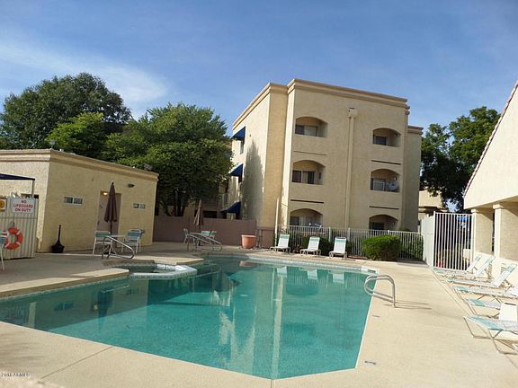 Awesome as an investment or seasonal home in the Valley of the Sun. Easy access ground floor unit. Installed full sized washer & dryer, 30 Inch electric range, Water heater replaced, tiled throughout, security screen door, ceiling fan, fenced back patio with storage closet. Double Closets in the bedroom. Rentals OK (with no time restrictions), 2 Pets OK (up to 40 lbs), Clubhouse, Pool, Spa & restaurant on premises, unassigned covered and uncovered parking. Conveniently located between the Surprise and Peoria Spring Training Stadiums.