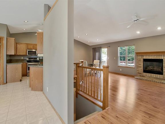 IT'S A TEN - MOVE IN READY, Open concept split bedroom home has new appliances and light fixtures, as well as newer paint. The kitchen boasts lots of warm cabinetry, the lower cabinets all have pull out shelves. Loads of workspace makes meal prep easy. The dining area is located adjacent to the kitchen. The Spacious living room is light and airy with views to large fenced treed private backyard. This Split Bedroom Plan allows for Master Bedroom privacy plus an ensuite bath complete with tub/shower, Dual Vanities and His and Her Walk in closets. Two additional bedrooms and bath are located on the opposite side of the house. Hunter Douglas Up/Down blinds are found in the kitchen and living room. The basement has a very large Family Room, with view out windows and wet bar plus a 4th bedroom, with large walk in closet, and bath. A large storm shelter and storage area complete the lower level.