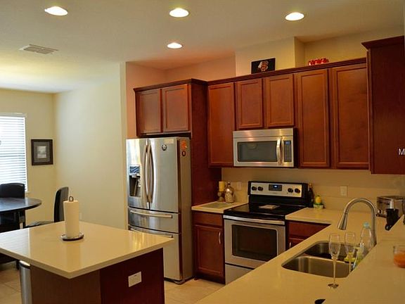 Traditional Sale! Enjoy the convenience of a move-in ready townhome in a great Windermere location! This well-appointed townhome is conveniently located to shopping and dining, as well as all attractions-area employment. Located just minutes from Walt Disney World, this townhome offers 3 bedrooms & 2.5 bathrooms. Upon entering the home, you will immediately notice the large, open living room and kitchen area. The kitchen is appointed with upgraded 42" cabinets, solid-surface countertops, LARGE central island, like-new appliances (including a top of the line 4-door Samsung refrigerator), closet pantry and recessed lighting. The kitchen opens into a large dining area, leading to the inside utility room. From the living area the back door leads out to a fenced, private courtyard which connects to the detached 2-car garage. The spacious, upstairs master bedroom has nice high ceilings and a walk-in closet. The master bath features 18" tile flooring, a large dual vanity and roomy walk-in shower. Community features include a lovely, resort-like community pool. Low HOA fees of $135 per month with a Windermere address and a spectacular view of Disney's fireworks. Don't miss this great opportunity!