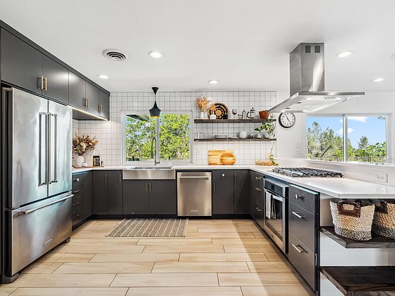 Tucked away in a serene, ultra-private setting, this fully remodeled home offers elevated views and a brand-new deck designed for peaceful mornings and golden hour evenings. With 3 bedrooms, 2 bathrooms, plus a bonus room downstairs (not included in the square footage), there's room to spread out and settle in. No detail was overlooked in this full renovation—inside and out. Modern touches shine throughout, from the custom-designed Ryan Russell master suite to the wood-look tile floors and recessed lighting. The kitchen is a showstopper with custom soft-close cabinetry, quartz countertops, a KitchenAid counter-depth fridge, propane cooktop, and wall oven—ideal for those who love to cook and host. The list of upgrades is extensive: four-stage high-efficiency HVAC system with new ducting, propane on-demand water heater, Milgard dual-pane windows, fireplace insert, new carpet in the bedrooms, and insulated, low-noise garage doors. With the bright open floor plan and exposed wood beams in the main space this is the ideal modern country home you have been looking for. With a long, paved gated driveway and abundant parking for RVs, boats, and trailers—and located just minutes from Lake Shasta's boat ramps—this is the perfect basecamp for adventure or retreat for relaxation.