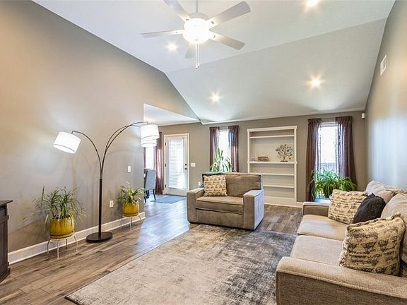 This stunning 6-year-old ranch house in the charming North Creek Village neighborhood is designed with accessibility in mind. Inside you’ll find luxury vinyl flooring and 2-3 year old interior paint that flows and creates a warm and inviting atmosphere. This one owner home has been well-maintained. The three bedrooms feature spacious closets. The primary suite has an ensuite bathroom, walk-in closet with built in shelving. The large kitchen has white cabinets, sleek stainless steel appliances, vast pantry space and ample counter space—perfect for preparing meals or entertaining guests. Whether you’re hosting a dinner party or enjoying a quiet night in, the kitchen is both beautiful and functional. The living area and kitchen opens up to a private backyard oasis, bordered by a 6-foot stained cedar privacy fence, offering views of the green space that backs up to the property. The backyard offers river rock landscaping. This home features a two-car garage, providing plenty of storage for your vehicles. Laundry on the main floor nestled between the garage and kitchen is supremely situated. Located in a well-maintained neighborhood, in an award-winning school district, this home offers the perfect blend of privacy, accessibility, and convenience. Minutes from major highways, MCI airport, Zona Rosa, and much more.