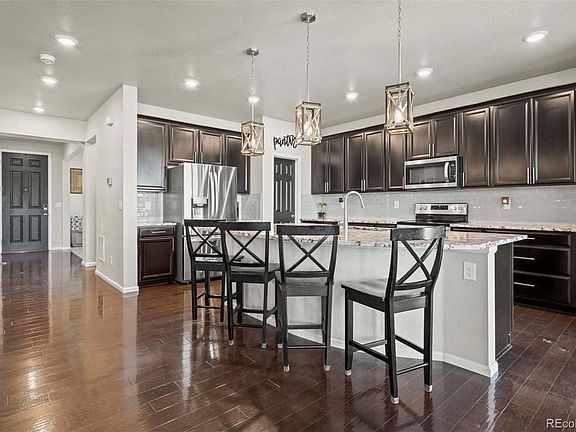 Spectacular two story home with over 3000 finished square feet on one of the largest lots in Aspen Reserve! Upon entering, you will be greeted with beautiful upgrades throughout including wide plank floors on the main level, and an abundance of windows streaming in natural light. The great room features the expansive kitchen with granite countertops, oversized island with breakfast bar, subway tile backsplash, pendant lighting, stainless steel appliances, walk-in pantry, and opens to the dining and family rooms. The main level also features an office or flex space and a powder bath. Upstairs, you will find the primary bedroom with private three quarter bathroom and walk-in closet, as well as three spacious secondary bedrooms, a Jack-and-Jill bathroom, additional full bathroom, and a loft! Don’t forget the basement that offers more square footage for you to customize to your own liking or simply use as extra storage space! Located on over a quarter of an acre, this home boasts a 3-car tandem garage, brand new roof, covered patio, second concrete paver patio with firepit, large landscaped yard and privacy fence. The wonderful Aspen Reserve community offers residents parks, basketball court, trails, and is within minutes to the Riverdale Golf Course, Adams County Fairgrounds, shopping, restaurants and major routes for easy commutes. Why buy new, when this home offers everything you need without all the added costs after closing!