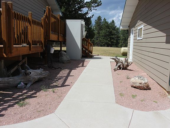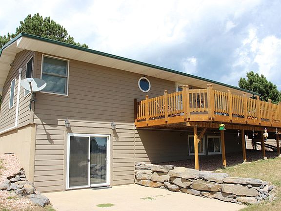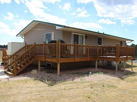Top shelf home, FULLY FURNISHED with possibilities! Completely remodeled inside and out over the years. Newer windows throughout. Customized kitchen with island bar, Quartz countertops, and newer stainless-steel appliances along with tile flooring. Beautiful hardwood flooring in the large living room. Hickory hardwood flooring in master bedroom with a large walk-in master closet with personal laundry facilities. Wide carpeted staircase to lower-level cozy family room featuring tile flooring and large windows make this a bright area for gatherings. The basement area consists of two lower-level bedrooms with conforming windows and are carpeted, custom bathroom, lots of storage closet space, a very sizable maintenance/storage room contains a second laundry room, and also a bright bar area or home office space with walkout door. Outside you'll love the spacious wrap around decking with elevator and detached double car garage. This home as a Briggs & Stratton Whole House Generator! Being just under 2 acres, you'll enjoy the serenity and location of this property. Close to town and the Mickelson Trail.