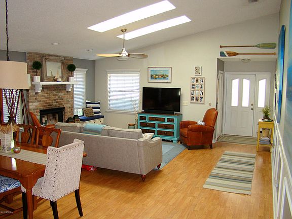 High Ceilings and New Skylights make this home Light and Bright. Open Floor Plan with designer touches. Wood Laminate Floor throughout most of the home. Warm and Inviting Family Room with Fireplace, Large Eat in Kitchen with SS Appliances and Tile Floor. 3 Bedrooms include Large Master with Walk in Closet and Separate room currently being used as a nursery. Private Bathroom with 2 Sinks and Walk in Shower. 2nd Bedroom has an Electric Fireplace that stays with the home. 3rd Bedroom doors have been removed to use as a Den. Newer Roof, AC, Water Heater, Stainless Steel Appliances All were Replaced in 2011/2012. There is a Termite Bond, 2 Car Garage and Private Screened Patio in Back. 2 Community Pools, Playground, and Tennis Courts. This home is Priced to Sell, Clean and Ready for New Owner