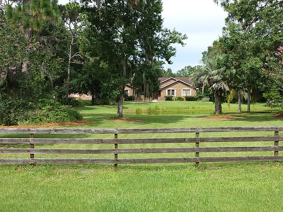 5 ACRE GATED HORSE RANCH IN PRES TIGIOUS EQUESTRIAN COMMUNITY WITH BARN, CUSTOM 5 BR HOME AND AIR CONDITIONED 1768 SF DETACHED GARAGE/WORKSHOP WITH LOFT. Do you want a private gated ranch of your own or just a large gorgeous high dry property with a beautiful custom brick home fit for a king? Are you looking for elegance and quiet ambiance? Do you want a solar heated pool with huge screened area, gazebo, pond, 5 bedrooms plus office, formal living room and dining room, comfortable huge family room with gas fireplace, solid wood cabinets and Granite in the kitchen? Do you want a 3 car garage plus detached air conditioned 2 car garage/workshop with unfinished loft for a rec-room/in-law apartment/rental apartment? And a 1200 SF barn with partial concrete floor, water and electric? Well this home has it all. The rooms are spacious and it is very well maintained. The grounds are gorgeous, high and dry with deer and other wild life, shade trees, landscaping, pond, gazebo, all fenced, with a long concrete driveway, plenty of parking, and a gated entrance. There are riding trails through the beautiful common areas. Call your Realtor today to see this magnificent find!