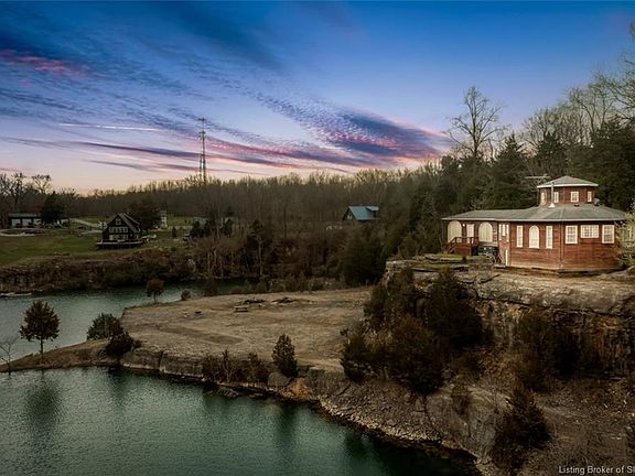 Are you ready to see a truly unique marvel of Southern Indiana real estate? Tired of the same old 3/2 on a slab on a quarter acre lot? Would you like to wake up every morning to breath-taking views of a private, clear water quarry? This is your chance to own a piece of property that is spectacle to behold. Welcome to 12225 HWY 62 in Charlestown. Conveniently located across from Charlestown State Park. This 2 bedroom, 2 full bathroom, octagonal home is ready for its next owners to love, as their previous owners have. This home offers 1,800+ finished sq ft, and is situated on 1.5 acres of the most beautiful views in the Kentuckiana area at this price point. Owner has a private quarry drive, and owns a good portion of the beautifully maintained, large fish stocked quarry. This would make an incredible AirBNB or vacation home for those who love to fish while enjoying their privacy. Schedule your showing today, before you miss your opportunity to own your little slice of paradise.