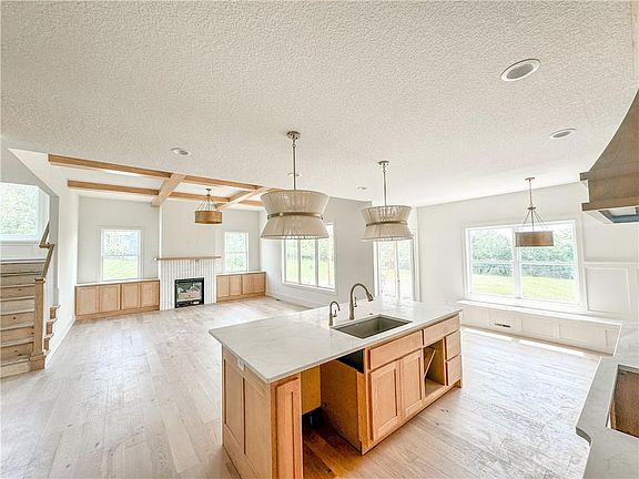 Welcome to this astonishing 1.5 story with a hard to find 1+ acre lot in Liberty North Schools! You’ll enjoy the elbow room provided with plenty of space leftover for that pool and/or outbuilding. The curb appeal and finishes will knock your socks off! Starting with the large front porch and side entry garage. As you enter the tall double doors into the two-story foyer, you’ll notice a home office to your left and dining area to your right. The Living Room features a 11’ ceiling with decorative wood beams, a gas fireplace, and built-in cabinets. The amazing kitchen features custom cabinets that go to the ceiling, quartz tops, a large island, two ovens, a breakfast area with built-in bench and a large walk-in pantry. The Master Suite has an incredible walk-in shower that feels like a spa, and features two separate walk-in closets! The laundry and mudroom are conveniently connected to the largest walk-in closet. Upstairs features 3 bedrooms, one with its own private bath. The other two share a bath with two vanities separated from the shower/toilet area. There’s an enormous elevated loft with vaulted ceilings that can be used as another rec room or large 5th bedroom! And there’s a second set of laundry hookups upstairs! The basement is a walkout with a workshop with a garage door that’s perfect for your mower or toys. This one has it all!
