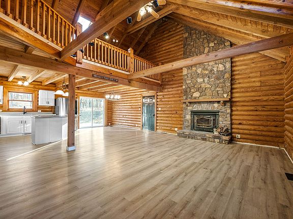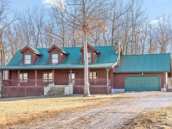 This stunning 4-bedroom, 3-bath log home offers 2,400 sq. ft. of modern updates and country charm. Nestled on 8.9 +/- acres (to be surveyed), the property features a private driveway, pasture, multiple outbuildings, and a 30'x50' insulated shop. The home boasts an open-concept living area with a natural stone fireplace, a fully equipped kitchen with a new Kohler faucet, cooktop island, double oven/microwave, and ample counter space. The main-level primary suite includes two cedar-lined walk-in closets, a jacuzzi tub, and a shower with multiple spray heads. Upstairs are two bedrooms, a bath, and a cozy balcony nook. Additional features include a large laundry room, pantry, attached garage, and an insulated pole barn with a sink and water heater. The partially fenced pasture has onsite water, perfect for hobby farming. High-speed internet add convenience. Located minutes from Hopkinsville, 30 minutes to Fort Campbell, and 75 minutes to Nashville.