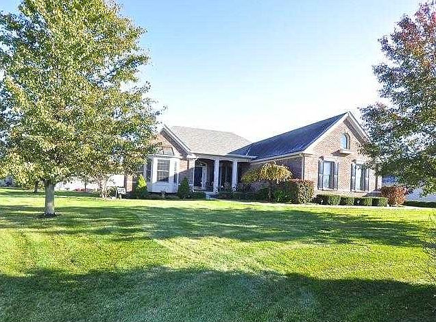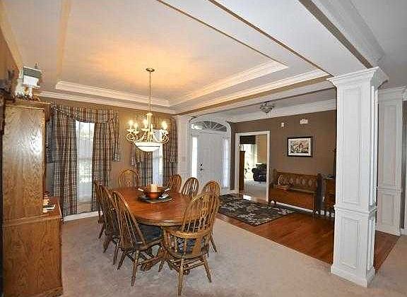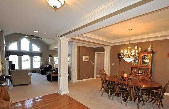 Beautifully updated exquisite executive home located on well landscaped corner lot with Pond view. Covered Porch welcomes your guest into Foyer with hardwood floors, crown molding, stately columns. Great open floor plan. Eat-in Kitchen with granite counters, hardwood floors, tile backsplash, Pantry, breakfast bar. Inviting Breakfast Room with hardwood floors, slider out to Patio overlooking Pond. Elegant Formal Dining Room with tray ceiling, enchanting chandelier, two windows. Great Room with soaring palladium windows offering Pond view, cathedral ceiling, gas log fireplace with electric starter, ceiling fan. Formal Living Room with bay window which could also be used as an Office. Master Suite on main level with tray ceiling, sitting area features bay window with Pond view, walk-in closet, ceiling fan. Master Bath with double sinks, walk-in shower, window over whirlpool tub. Second Bedroom currently being used as an office. Bedroom Three with corner windows. Full hall Bath. Laundry Room with shelving, tile flooring, window. Huge finished Basement with large windows, 9 ft ceilings, exquisite full Bar, Bonus Room, half Bath. Enjoy entertaining guests on your private Patio overlooking Pond. Three car attached Garage. This home has lots of storage.