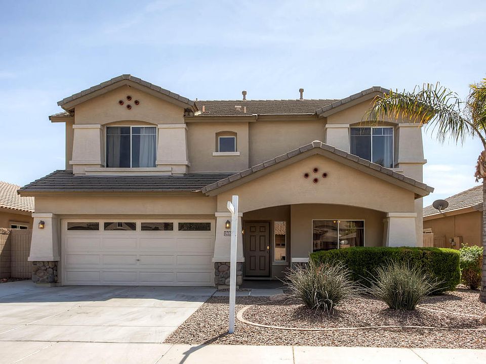 Beautiful Home sitting on Coldwater Springs golf course with views of the Estrella Mountains. Home has 4 bedrooms (office and den could be additional bedrooms) with 3 full bathrooms, one bedroom and bathroom is located down stairs. Large spacious kitchen with open floor plan to the family room. Separate living and dinning room off the main entry. Extended covered patio and spacious front porch. Upstairs is the master with two additional nice size bedrooms and large loft. Upstairs also has walk-out to the large deck overlooking the back-yard and golf course.New Tile in Living Room, Kitchen, Dining Room, Hall and Bathroom on the first floor (Does not show in pictures but shows in Matterport 3D Virtual tour)