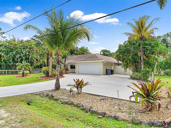 Your tropical paradise awaits! This 3 bedroom, 2 bathroom charming home sits on a spacious fenced-in 1.25 acre lot in the equestrian-friendly Jupiter Farms. Enjoy the feeling of complete privacy while being located just miles from the turnpike, I-95, A-rated schools, high-end shopping, and of course the beach! The backyard features a pool, outdoor shower, pond, and a large custom playground surrounded by Bamboo trees, African Oil Palm, Bismarck tree, and vibrant flowers. Inside the home you'll find tile and wood floors throughout, an updated kitchen with stainless steel appliances, updated bathrooms, living room, formal dining room, den, screened-in porch, and 2 car garage! All bedrooms feature a walk-in closet. Fabulous home to enjoy indoor/outdoor living and great for entertaining.
