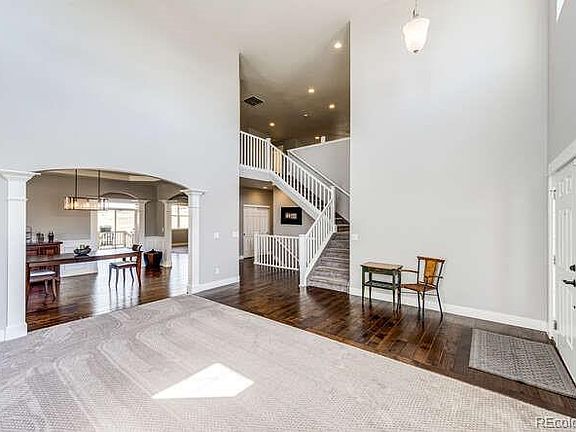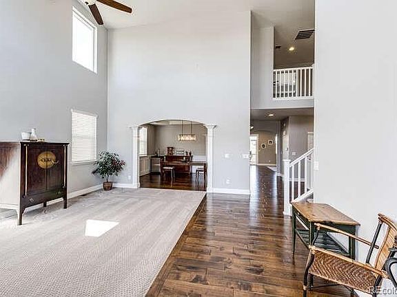 Welcome to Hilltop Pines at Pine Bluffs! Exceptional 2 story with open entry and soaring ceilings. Walk into spacious living room formal dining room combo or flex space for endless options. Loaded with hickory hardwoods and tasteful finishes. The kitchen offers double ovens, gas cook top, roomy walk in pantry, tile backsplash, granite counters and island. Under cabinet lighting and plenty of cabinets. Built in work space off kitchen and family room. Entertaining is no problem with kitchen island, eat-in kitchen space, back deck, located off breakfast nook and family room. Cozy gas fireplace, Powder guest bath, Main floor Bedroom with full en suite bath and walk in closet. Mud room with built in cubbies is a great drop zone off of the 3 car garage entry. The upper level offers roomy loft or flex space for office or play room and 3 additional bedrooms, Jack and Jill bath, Fantastic master suite with coffered ceiling, 5 piece master bath, dual vanities and massive walk in closet! Upper laundry room with sink. The unfinished basement has another 2052 square feet to finish for additional space or possible media room, work out, so many possibilities. Rough in plumbing. Dual furnace and AC. Full house humidifier. Pine Bluffs offers local outdoor pool and is minutes away from downtown Parker. Easy location to get to schools, shopping and great dining. Popular floor plan with so many great options to make your home. Seller needs rent back until end of December 2021. This home will check all of the boxes for you and more.