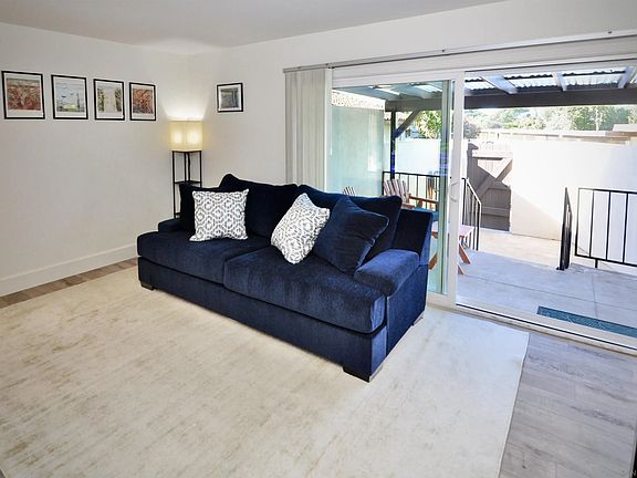 Beautiful, updated condo within steps of RB Swim and Tennis Club and all that Rancho Bernardo has to offer - Dining, Shopping, Library, Churches, and plenty of activities. This condo features gorgeous neutral, new flooring, a fresh, white kitchen with stone counters, stainless appliances and plenty of storage. The open concept living/dining area, has an added bonus of a lovely, private, outdoor, fenced in, garden space perfect for indoor, outdoor entertaining. Half bath downstairs. Upstairs are two comfortable bedrooms and a full bath, filled with natural light. There is one assigned carport with a storage area, plus easy street parking for guests. Laundry and Mailbox 13 covered steps from unit! HOA includes Wifi, Spectrum TV, DVR, Modem and premium channels (apps), Water, Trash, roof, and limited insurance. Additionally, annual fee that pays for premium membership to the Rancho Bernardo Swim & Tennis Club located just across the street. The club features a gym, pickleball and tennis courts, basketball courts, playground, karate and fitness classes, pools, and even a woodshop for hobbyists. Conveniently located near freeway access, this is your chance to enjoy North County living with resort-style amenities just steps from your front door. Come take a look. This one checks all the boxes!