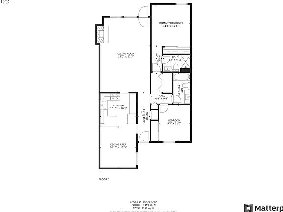 - Total interior livable area: 1,208 sqft