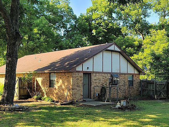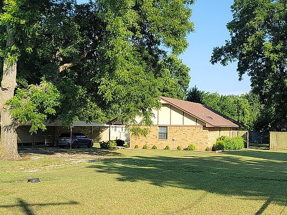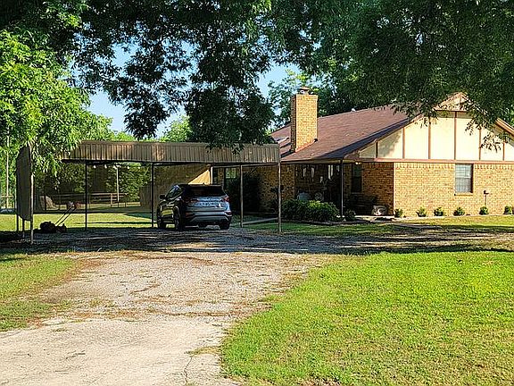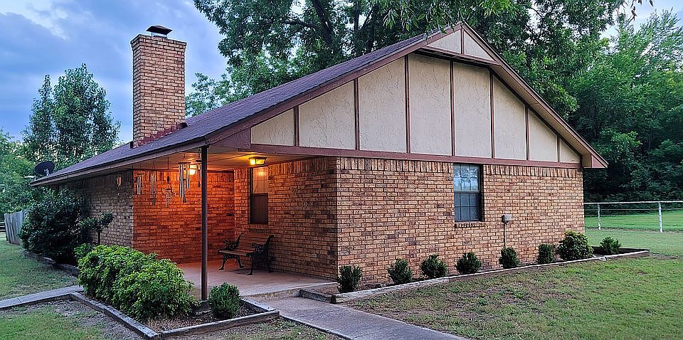Rare find. You don't want to miss this one! Brick home on concrete slab foundation (2 bed, 2 bath with 1,415 sf) located on 4.87 beautiful acres in Marietta, Oklahoma near I-35 which includes: mature pecan trees, fruit trees, pond, creek, carport, pipe fencing, 2 large storage buildings with concrete/gravel, and another storage building on large concrete pad with electricity, water, and air conditioning. The open floor plan showcases a fireplace and a built-in curio cabinet/bookcase. The master bedroom features a huge ensuite, walk-in closet, and an old bank safe. The workshop/utility room features a built-in workbench and hobby desk. The 2nd bedroom features a walk-in closet and another closet. This home has lots of storage space and a big, beautiful yard! The geothermal heat pump/central air and 66 gallon water heater are fairly new. Call or text 580-263-8442 with inquiries.