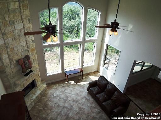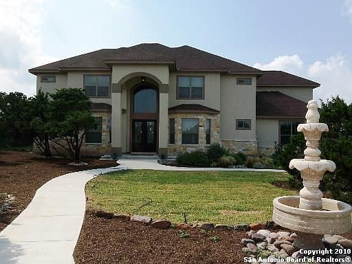 STUNNING HOME ON OVER 1 AC ON TOP OF A HILL WITH GORGEOUS VIEWS OF THE HILL COUNTRY. THIS HOME FEATURES AN ELEGANT DOUBLE DOOR ENTRY WAY WITH SOARING CEILINGS ROCK FIRE PLACE IN FAMILY ROOM, SPACIOUS ISLAND KITCHEN WITH 42" CABINETS, GRANITE COUNTERS, BUILT-IN STAINLESS STEEL APPLIANCES, INDOOR/OUT DOOR SURROUND SOUND, EXTENSIVE TILE AND WOOD FLOORS, ROD IRON SPINDLES, FIRST FLOOR WINDOWS WITH HUPER OPTIK FILM, MASTER BATH W/ HIS/HER SHOWER AND HIS/HER SINKS, ROMAN SHADES PORCH AND BALCONY