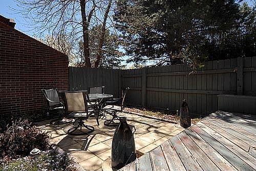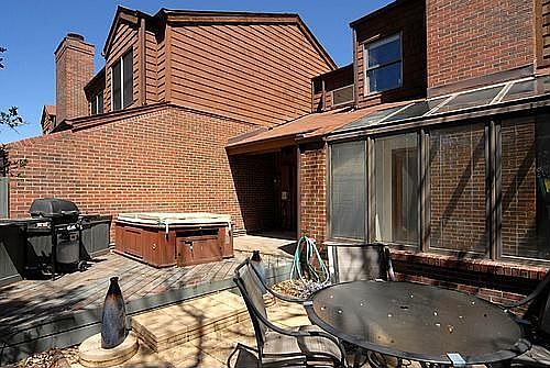 Large updated townhome w/ finished basement & 2 car garage. Updated kitchen w/ slab granite, tile floor & pantry. Spacious living room w/ gas fireplace surrounded by brick next to formal dining room w/ glass double doors looking out to the fence patio/yard. Two master bedrooms both w/ master bathrooms w/ large oval tubs/showers, vaulted ceilings, skylights & updates. Main level third bedroom or could be a study. Finished basement with open family/rec room, wet bar, laundry room & storage. Sunroom. Fenced back patio/yard. Backs to greenbelt. Gate opens from patio to access greenbelt & walk across the street to Highline Park or Highline Canal Trail. Down the road from Aurora Hills Golf Course. Close to Lowry & Fitzsimons redevelopments. New Aurora Light rail Access Excellent floorplan w/ nice finishes and close to many amenities.