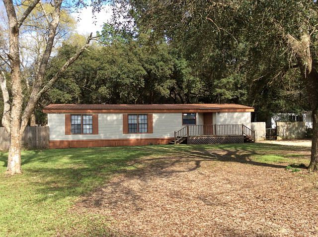 Older model doublewide manufactured home completely remodeled. The lot has nice oak trees in the backyard with a storage shed. Backyard is fenced. Home has a metal roof approx. 6 years old. Home has a septic tank & well water. The home has all new Lifeproof luxury vinal flooring all throughout it. Home is very clean. There is an additional bedroom built off of the back porch with ventilation, so it has heat and a/c. The kitchen area is completely remodeled with all new walls, cabinets and beautiful granite counter tops. Home has had more tie downs and piers installed to meet today's code & better insurance premiums