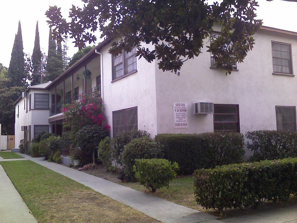 Lovely, large, light and bright, rear, upstairs unit in a garden 5-plex. 2 parking spaces. This unit is like a house. Private and quiet. Separate dining room, Oak, tile and carpet floors, granite counters, dishwasher, vertical blinds, ceiling fans, etc.. Large rooms, great closets, Lots of cabinet space in kitchen. Separate , private laundry room with washer dryer hook ups. Refrigerator available. Front and rear entries. Great location. Walk to Laurel Canyon, Gelson's, etc. Non-smoking, no pets building. Shown by appointment. Rent includes normal water and trash. There is a stove and refrigerator available.
