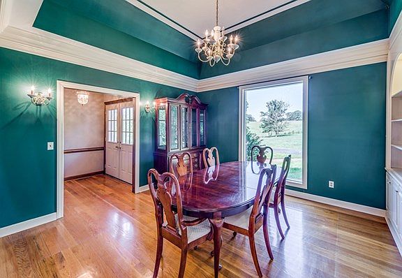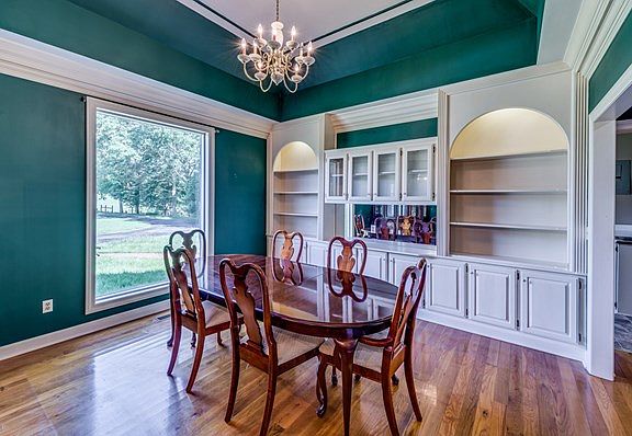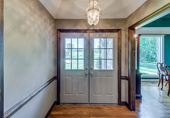 Enjoy peace and privacy in this custom built home nestled in the heart of the country. This one owner home features high ceilings, crown molding, built in cabinets in every room, hardwood throughout, new carpet, new roof and a sun room to spend all four seasons in. The kitchen, with adjoining formal dining room and living room, offers an eat in area, island, walk in pantry and includes all appliances. Large windows throughout the home showcase the landscape and let in an abundance of natural light. Two spacious en suite bedrooms with walk in closets are located on the main floor. The finished basement has one bedroom, two baths, storm shelter and plenty of storage. The spacious downstairs is perfect for a game room or multi-generational living. The home includes an attached one car garage with a separate work shed that can can store an additional two cars. Entertain on the covered back porch lined with mature trees or relax in the six person hot tub.