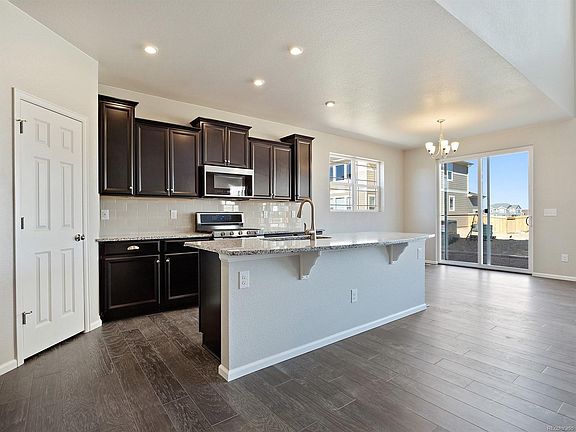 Brand NEW energy-efficient home ready NOW! The Glacier features kitchen with center island, walk in pantry, eat in dining, Great room with a fireplace, Master suite with huge walk in closet and luxurious bath with his and hers sinks, walk in closets throughout and beautiful outdoor living space. Love living at Aspen Reserve conveniently located close to Downtown Denver. Known for their energy efficient features, our homes help you live a healthier, quieter lifestyle while saving you thousands on your utility bills.