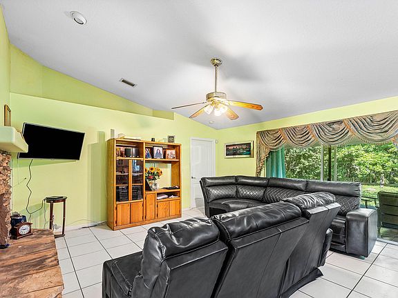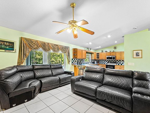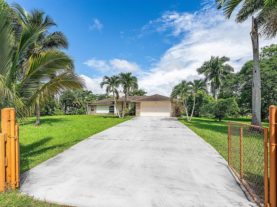 Solid CBS home in The Acreage with 3 BR, 2 BA, with a flexible office/den that can serve as a 4th BR. 1,871 sq ft u/a with a 2 CG that sits on 1.33 fully fenced acres ON A PAVED ROAD at the end of the street next to the canal which gives you lots of privacy. The welcoming living room w/ a wood-burning fireplace, 2023 A/C, screened-in patio overlooking the expansive backyard. Plenty of space for a pool, detached building, or future in-law suite--bring your RV, boat, pets, and garden plans. Home needs some updating/TLC and the roof is 1999. Great schools, quick access to main roads, the airport, parks, and abundant shopping--country feel with city conveniences nearby.