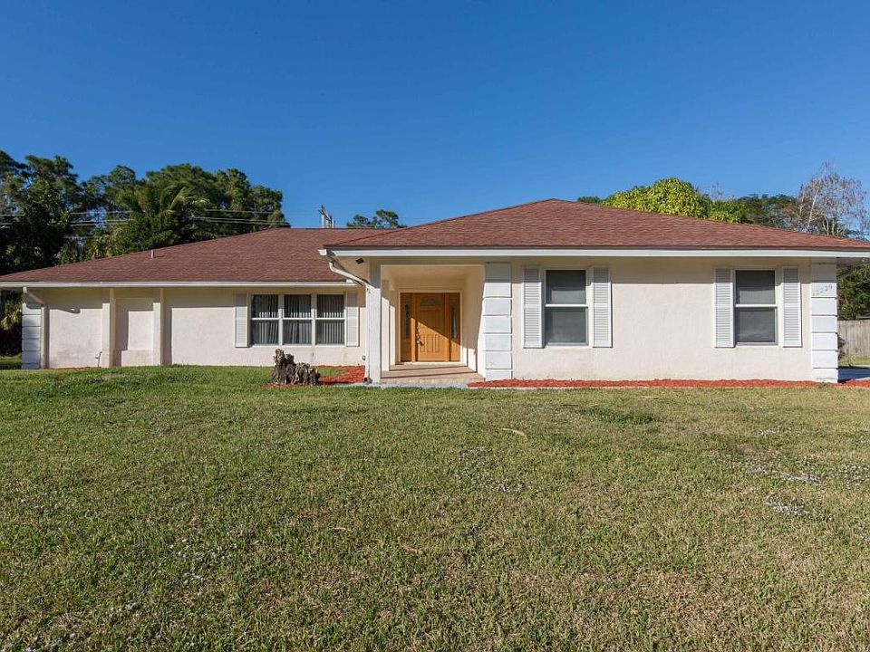 GREAT CHANCE TO LIVE IN PINEWOOD EAST, ALMOST AN ACRE OF LAND! THIS HOME HAS LARGE LIVING ROOM, FORMAL DINING ROOM, FAMILY ROOM AND A BONUS ROOM OFF THE MASTER BEDROOM. UPDATED KITCHEN WITH GRANITE COUNTER TOPS, LOTS OF CABINET SPACE. TILE IN EVERY ROOM. LARGE GARAGE. HOUSE WAS RECENTLY PAINTED INSIDE. WELL WATER FOR SPRINKLER SYSTEM WHICH HAS A NEW PUMP AND TIMER. LOTS OF FRUIT TREES FROM MANGOES, AVOCADOS, STAR FRUIT, AND MORE. RATED A SCHOOLS, CLOSE TO EQUESTRIAN SHOWS, POLO GAMES, SHOPS AND MUCH MORE!