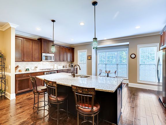 - Kitchen Features: Breakfast Bar, Cabinets Stain, Eat-in Kitchen, Pantry, View to Family Room, Stone Counters, Kitchen Island