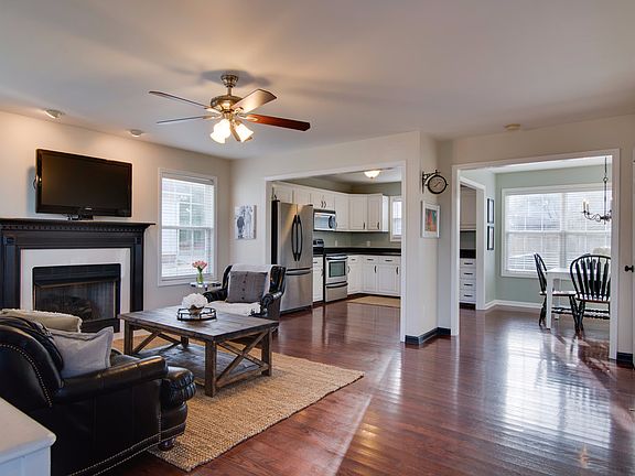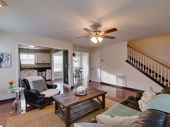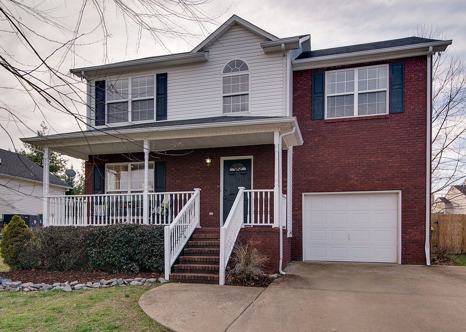 Charming Spring Hill home with covered front porch and fenced yard! Large bedrooms, updated lighting, hardwood throughout first floor, open concept floorplan downstairs, stainless steel appliances, large back deck, big fenced flat yard, & WCS schools!