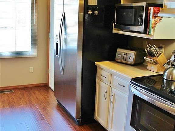Lots of charm in this updated East-side condo located just minutes from shopping, restaurants and parks. Open concept floor plan features high-ceilings, large living room and main floor laundry. Updates include hand-scraped laminate flooring throughout kitchen/dining/living space and bathroom fixtures/flooring â15, refreshed kitchen cabinets and new appliances â14, unique bar-top seating and fresh paint throughout â14, ceiling fans and light fixtures throughout â12, and more. 2-car garage, screened in porch