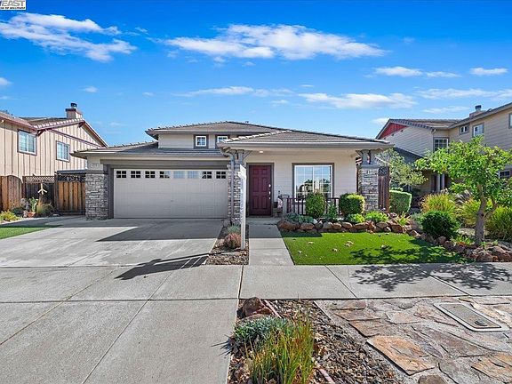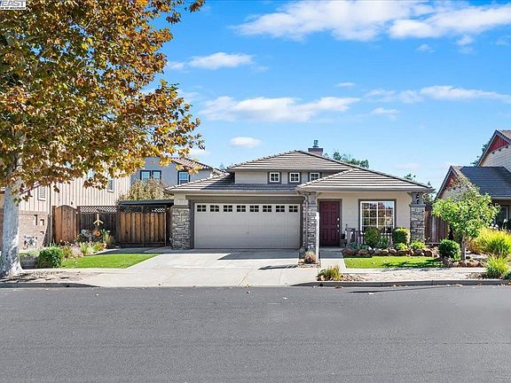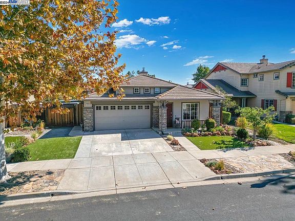 Step into this beautifully maintained home, where comfort and style blend seamlessly. The remodeled kitchen features quartz countertops, gas range, custom maple cabinets with an additional wall of cabinets and counter space, and a stylish backsplash. A sliding door leads you to the backyard, providing easy access for outdoor dining or relaxation. The open-concept design of the main living area allows for effortless interaction between the kitchen, dining, and living spaces. Whether you're hosting family gatherings or enjoying a quiet evening at home, the layout is ideal for any occasion. The family room features a cozy gas fireplace with updated stone, as well as built-in media storage and cabinetry that adds both function and charm to the space. The home is ideally situated directly across from a park, offering a serene and scenic view. With easy access to the 580 freeway and Vasco Road, this location is great for commuters and the location is also close to local wineries, shopping, schools, and multiple parks. The peaceful backyard features Flagstone pathways, artificial turf, fruit trees, veggie garden and storage. Additional features include remodeled bathrooms, newer water heater, owned solar for the home and a Tesla EV charger.