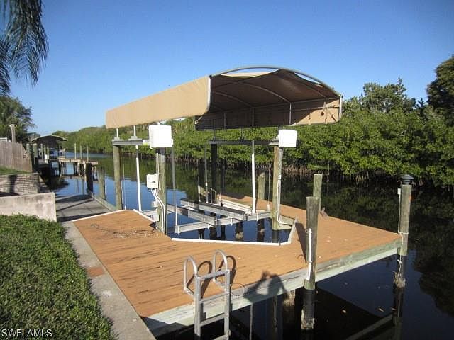 BRING THE BOAT! AMAZING 3BR/2BA POOL HOME WITH RIVER ACCESS just minutes away! Newer Boat Dock with Boatlift and Canopy! Spacious Living/Kitchen and Dining areas all in an Open Floorplan setting. FAMILY ROOM WITH FIREPLACE! STORAGE GALORE with walk-in closets in each Bedroom. Centrally Located Neighborhood close to Shopping, Dining, Entertainment and Bridge to Fort Myers! Don't delay-SCHEDULE a SHOWING TODAY!