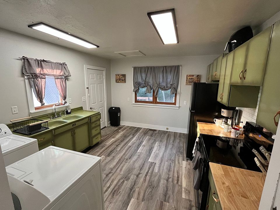 - Included: Dryer, Microwave, Refrigerator, Stove, Washer