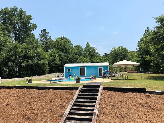 Country living at its best! 3 large bedrooms, 2 bathrooms, and an office that could be 4th bedroom! Master bedroom has large walk-in closet, other bedrooms have 2 closets each! Tile in guest bathroom. Beautiful wainscoat in Master bathroom and hallway. Large open floor plan has dining, kitchen and living all together. Hardwood floors in living room with vaulted ceiling. Kitchen has all stainless steel appliances, large pantry and beautiful bar area. This private home has a low maintenance salt water pool with partially finished pool house. Pool house includes working bathroom, common area, and stubbed out for kitchen. There is a wired workshop, wired open garage, and well built chicken coop! Metal awning/carport that fits up to 40ft camper or travel trailer.