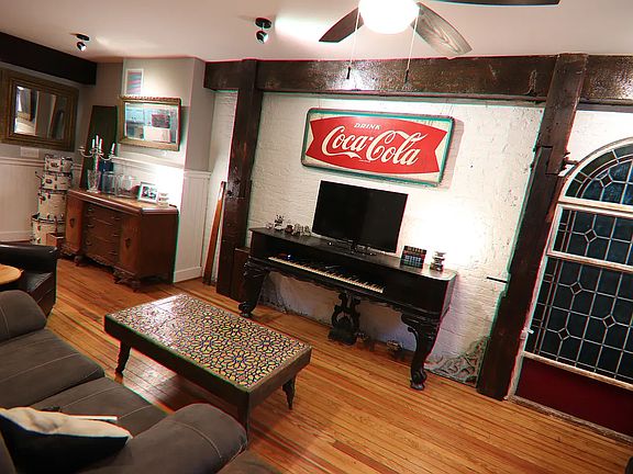Unique artistic detailsPartially finished basementAmazing bathroomStainless steel appliancesExposed brick wallsOff street parkingAiry open-concept living