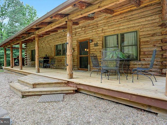 Your dream of owning a log home is about to come true. Private setting on a generous 15 acre parcel of gorgeous hardwoods, located on Elk Ridge close to many outdoor recreational activities. Hike the Appalachian, raft the Potomac, visit numerous breweries, wineries and historic Harpers Ferry. Just over the Frederick County line, you'll find this home full of comfort with rustic touches. The heart of the home welcomes you with an inviting open-concept layout, where the kitchen, dining, and living areas meet. Desirable main level bedrooms divided by a jack and jill full bath, soaring ceilings on first level, tiled kitchen breakfast bar and a powder room. Upper level primary suite offers an expansive walk in closet and private bathroom with soaking tub. Full walkout basement awaiting your finishing touches with rough in for full bath. Expansive porch to enjoy your morning coffee and amazing sunsets. Call for private tour at your convenience.