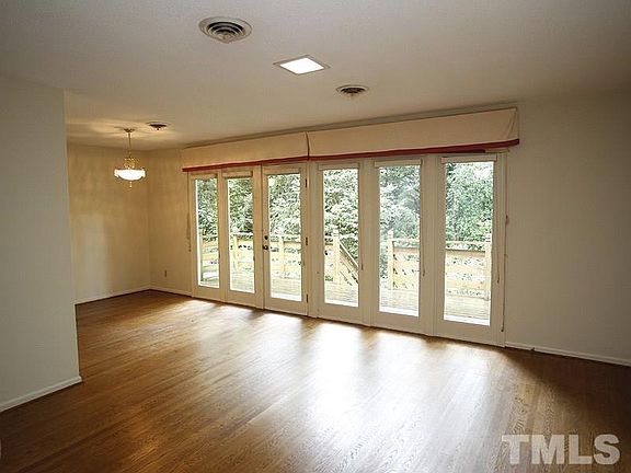 Great opportunity to be in the heart of Cary near Cary Towne Center and Crossroads Plaza. This wonderful ranch sits on a .74 acre lot and a has a new roof and newer heat pump. The 3 bedroom 2 bath home flows freely indoors and out. Home has a living/dining area, kitchen with a view of the wonderfully landscaped backyard, a den, and a sunroom with a fireplace. Huge deck and two car garage complete this unique find in Cary. Needs some updates but tons of potential and great floor plan. Welcome Home!